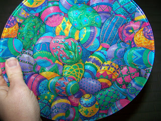 Someone gave me a lovely Easter plate years ago that had been decoupaged with fabric.