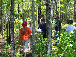 Continue hiding all the boxes and marking all the locations. By putting all the “way points” into the GPS unit, the kids can just select each way point in order and move independently from one cache to the next. We only have one GPS unit, so the birthday boys took turns looking up the next way point and leading the group to the next cache location.