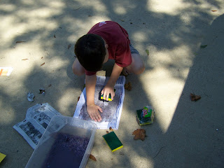 This activity is great to do outdoors, as it can be a bit messy. I am putting a second option at the bottom of this post, for those who want to go even cheaper and even easier and skip purchasing screen or using any real paper at all!