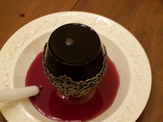Father puts out the candle in the dish of overflowed wine. Father says, “The Light of the world went out for three days as His blood was spilled for us.”